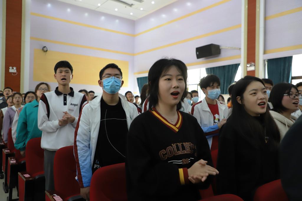 马克思主义学院教师李媛讲述了“共和国第一首颂歌——《歌唱祖国》”“新中国第一声呐喊——《中国人民志愿军战歌》”“社会主义建设第一支进行曲——《我们走在大路上》”的创作过程。当女生独唱《歌唱祖国》的歌声响起时,耳熟能详的旋律立即引发了全场大合唱。