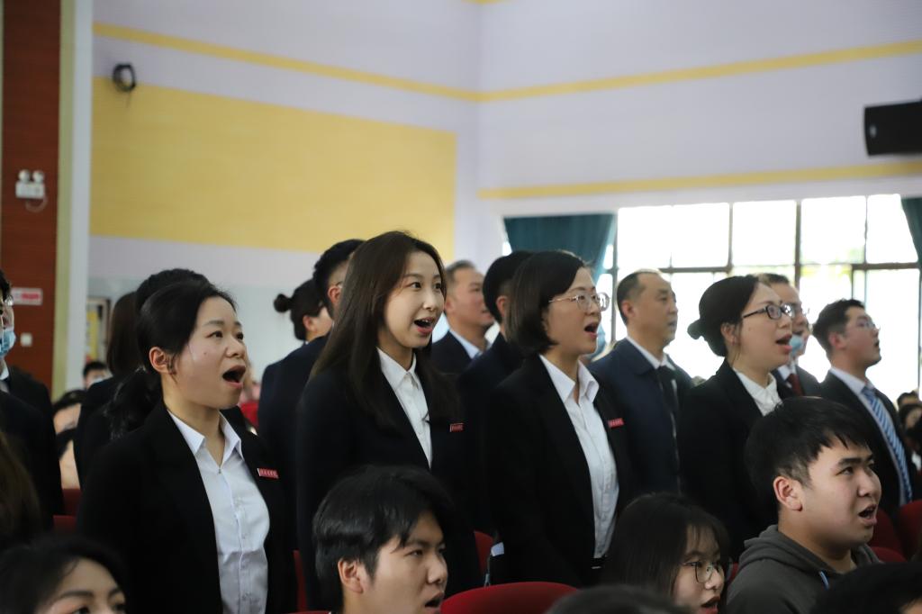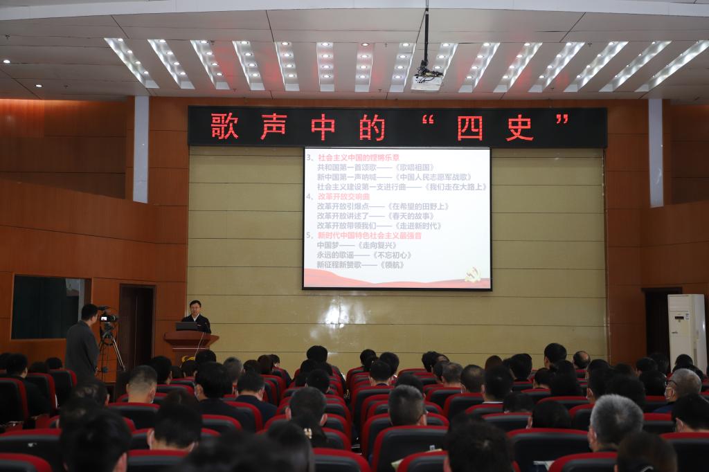 在歌声中学习“四史”,从“四史”中汲取奋进力量。3月11日下午,学校党委书记李恭进和马克思主义学院思政课教师一道,以团体教学的方式,为全体师生上了一堂别开生面的“歌声中的‘四史’”思政课,用歌声回顾党和国家艰难奋斗历程和取得的辉煌成就。在家校领导张小康、曾泽鑫、黄瑞忠、叶军明、彭维杰与现场420余名师生一起聆听。