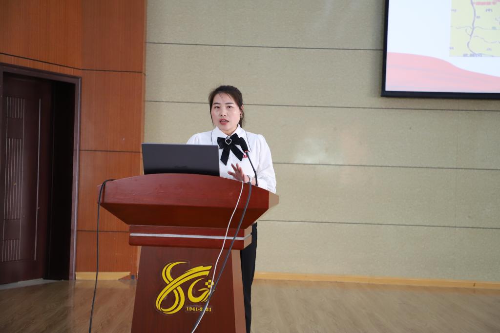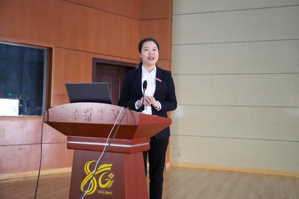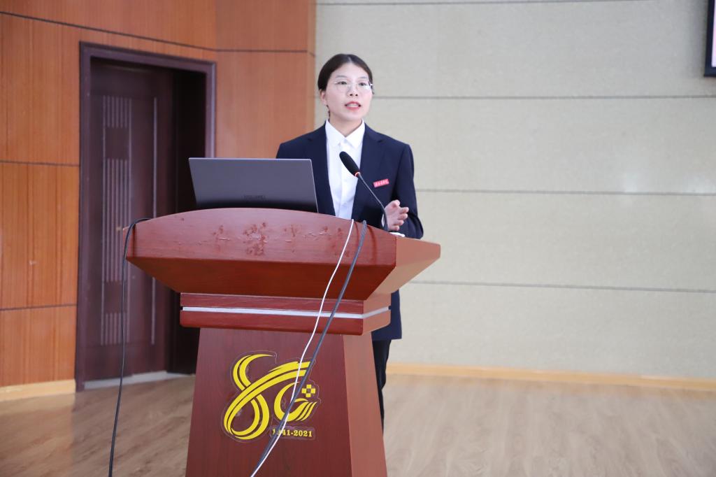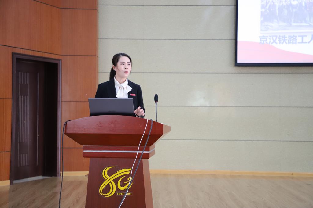 马克思主义学院教师卢婷讲述了“井冈山飘下来的歌声——《毛委员和我们在一起》”“中央苏区干出来的歌声——《苏区干部好作风》”“长征中磨出来的歌声——《过雪山草地》”等歌唱中国共产党的早期歌曲背后的动人故事,并现场清唱《苏区干部好作风》。